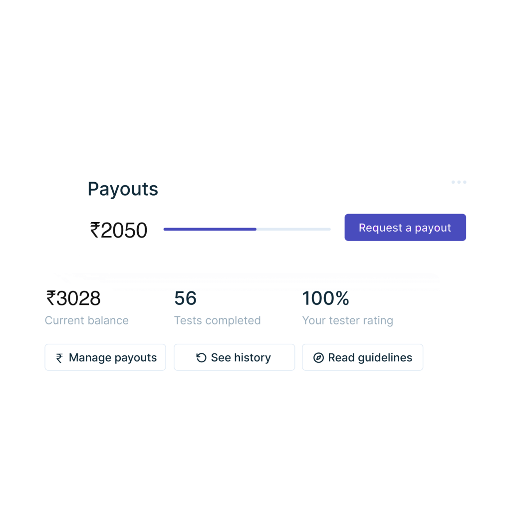 Reward amounts range depending on the research type—your research feed will always show you the amount you’ll get paid for each test. Payments for completed tests are usually sent within 72 hours after completion.