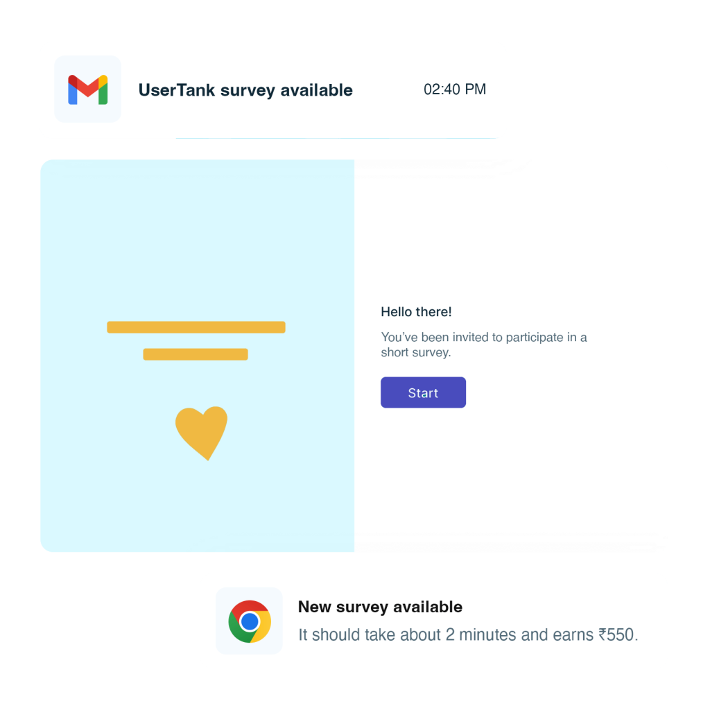 Receive real-time notifications for available surveys, focus groups, product testing, and ad/concept testing.
